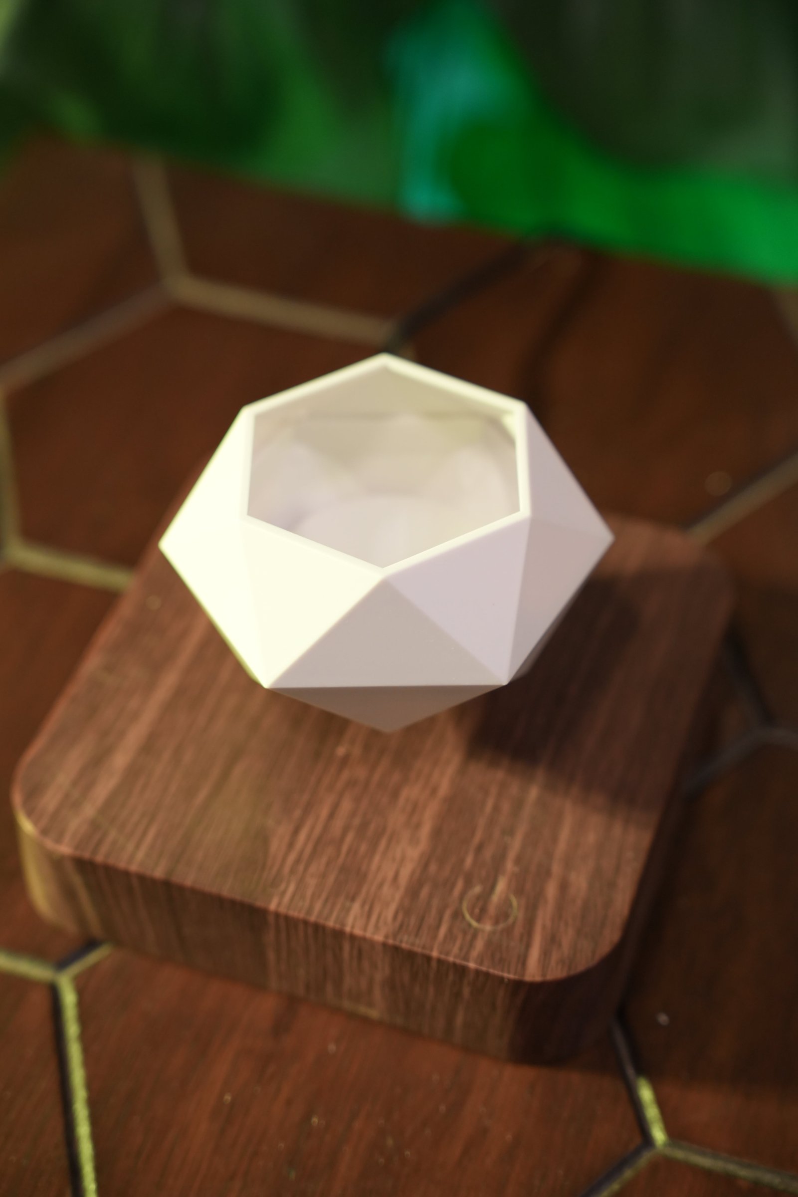 A modern geometric vase that floats in mid-air using magnetic levitation technology. Paired with a premium wooden base, this unique planter creates a mesmerizing display for small plants or floral arrangements. Perfect for desks, living rooms, or gifts—adding a touch of elegance and innovation to any space.